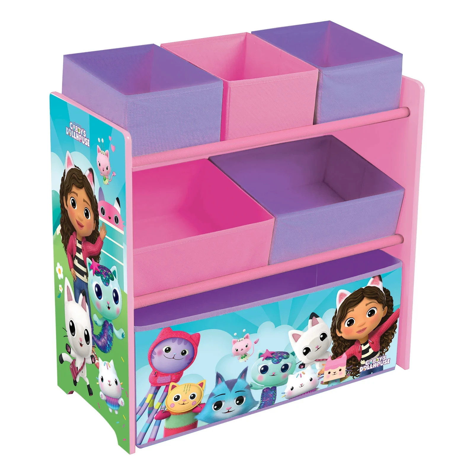 Gabby’s Dollhouse Wooden Toy Organiser with 6 Storage Bins Purple