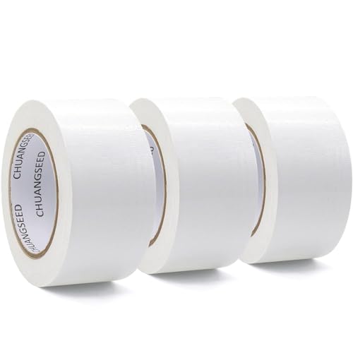 CHUANGSEED 3 Pack white Waterproof Duct Tape 50mm x 27.4m Heavy Duty Strong Gaffer Tape for Repairs, DIY, Crafts, Bundling,and Moving Boxes, Indoor/Outdoor Use (White)