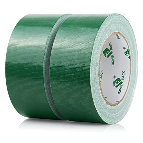 BOMEI PACK 2 Packs Green Duct Tape 230mic thickness Reinforced Cloth Gaffer Tape 48mm x 30Y Waterproof for Pipeline duct Repairing,Heavy duty Sealing,Bundling,Strapping,labeling
