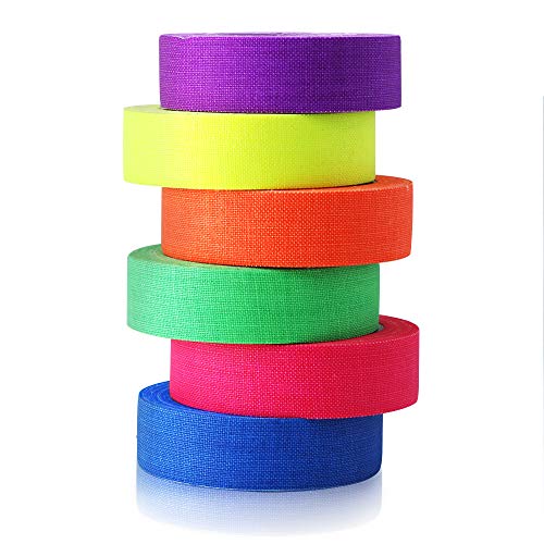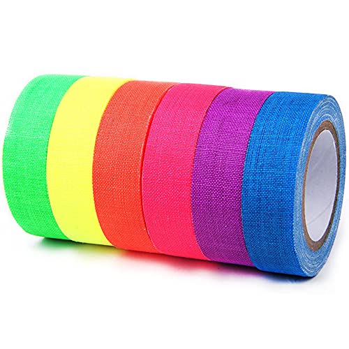 LightingWill UV Blacklight Reactive Fluorescent, Fluorescent Gaffer Cloth Tape, 0.59in X 16.5FT Per Roll, Decorative Black Light Neon Party Tape With Glow Party Supplies, 6 Colors