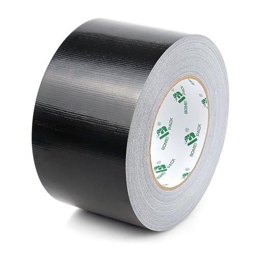 BOMEI PACK Black Wide Duct Tape Reinforced 75mm x 50m Waterproofs Heavy Duty Gaffer Tape for Pipelines Fixing Repairing DIY Craft Labeling,Carpet Edge Single Side Seam Sealing