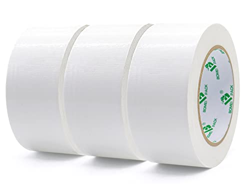 BOMEI PACK White Duct Tape 3 Rolls Reinforced Waterproof Heavy Duty 48mm x 30m Cloth Gaffer Tape for Repairing,Sealing,Bundling,Strapping