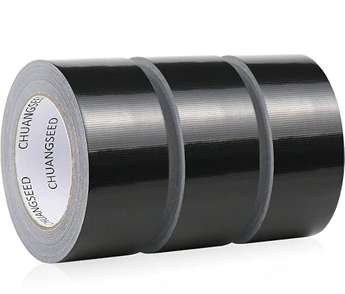 CHUANGSEED 3 Pack Black Waterproof Duct Tape 50mm x 27.4m Heavy Duty Strong Gaffer Tape for Repairs, DIY, Crafts, Bundling,and Moving Boxes, Indoor/Outdoor Use (Black)