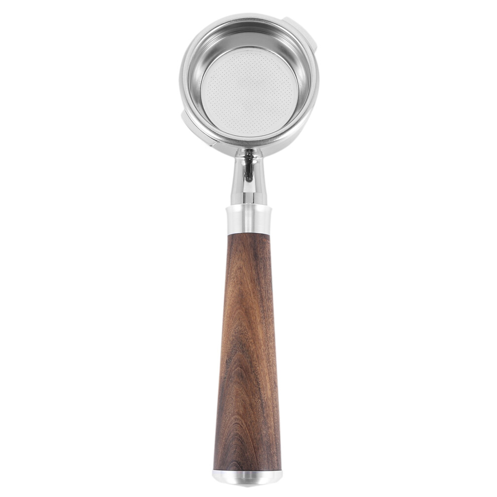 Bottomless Portafilter for Espresso Machines, Stainless Steel Naked Portafilter with Ergonomic Wooden Handle Compatible with Breville and Gaggia Botto