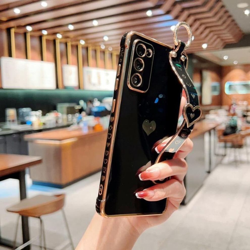 (black, Samsung S21 FE) For Samsung S25 Ultra S24 FE S23 S22 S21 Plus A55 A53 A52 Love Heart Pattern Wristbands Colorful Soft Case Cover For Galaxy A1