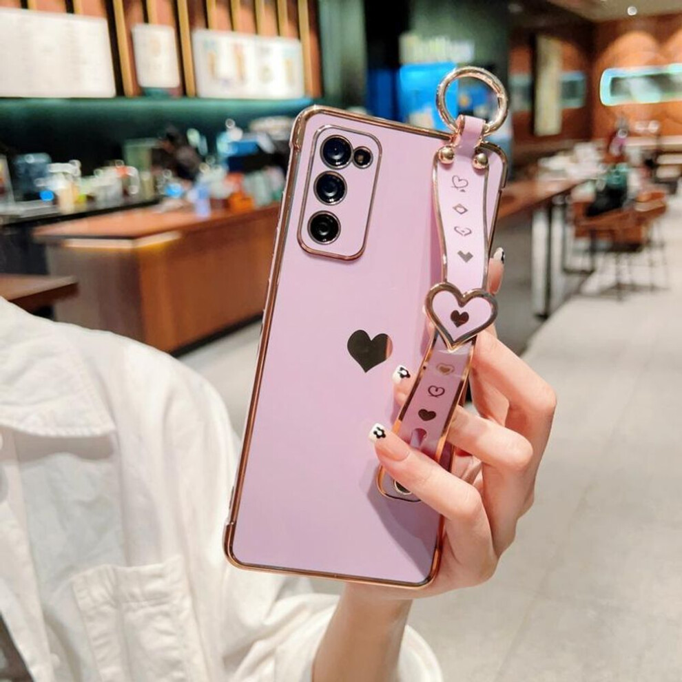 (purple, Samsung S20FE) For Samsung S25 Ultra S24 FE S23 S22 S21 Plus A55 A53 A52 Love Heart Pattern Wristbands Colorful Soft Case Cover For Galaxy A1