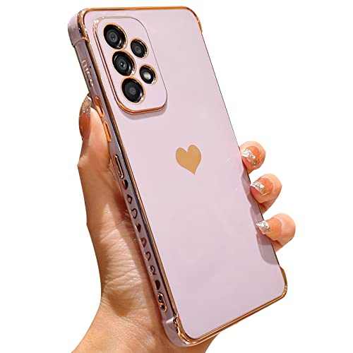 Urarssa for Samsung A13 4G Case (Not for 5G) Cute Bling Plating Heart Design Cases Women Girls Shockproof Bumper Silicone Slim Protective Cover for Samsung Galaxy A13 4G-Purple