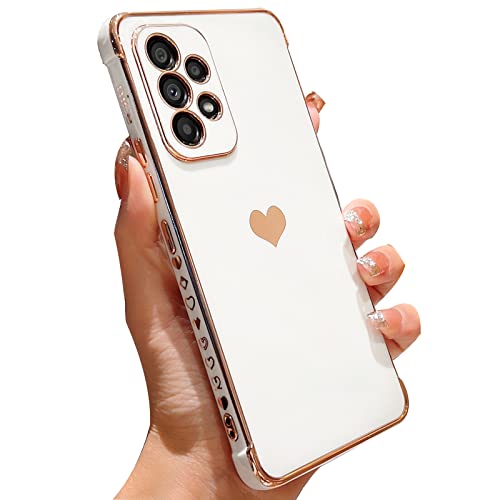 Urarssa for Samsung A13 4G Case (Not for 5G) Cute Bling Plating Heart Design Cases Women Girls Shockproof Bumper Silicone Slim Protective Cover for Samsung Galaxy A13 4G-White