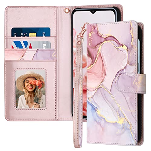 Fingic for Samsung A13 Case,Samsung Galaxy A13 4G Case Wallet,Marble Rose Gold Leather Slim Magnetic Closure Kickstand Shockproof PC Bumper Card Holder Protective Cases for Samsung Galaxy A13 4G