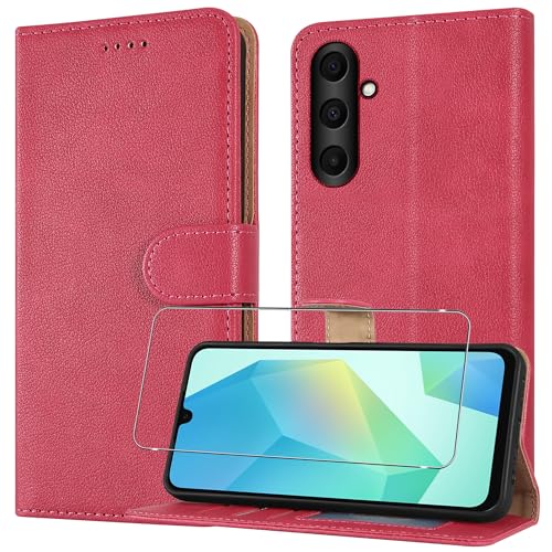 AROYI Case Compatible with Samsung Galaxy A17 5G/A26 5G Case with Tempered Glass Screen Protector,Wallet Case PU Leather with Card Slots Folding Stand Magnetic Protect Flip Cover Red