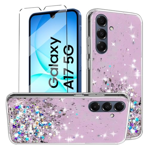 ivencase Clear Glitter Case Compatible with Samsung A17 Phone Case with 2 Screen Protector, TPU Silicone Sparkly Bling Star Soft Cover Flexible Transparent Shockproof Cover Samsung Galaxy A17 5G/4G