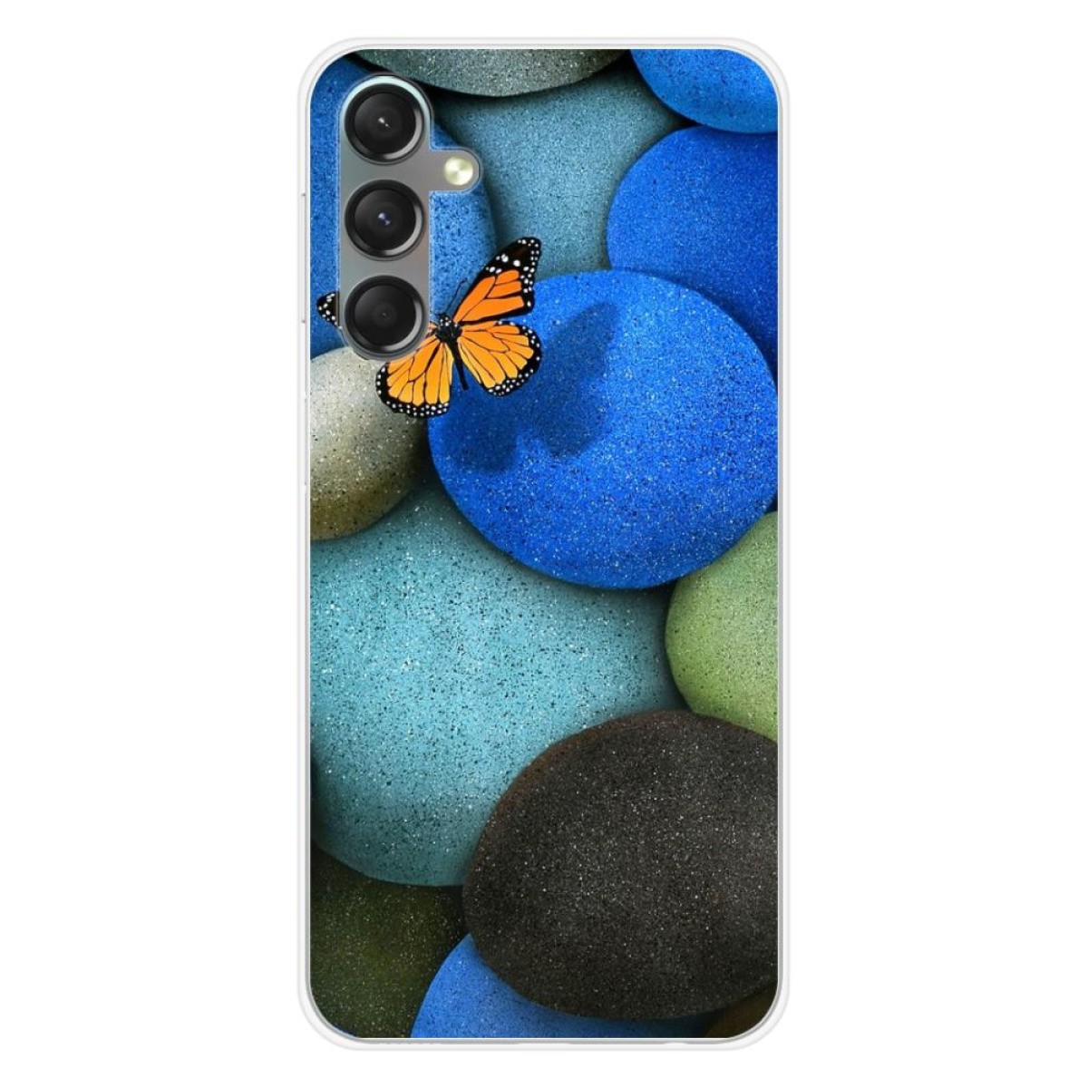 Compatible Samsung Galaxy A24 4G Butterfly Pebble Blue Printed Silicone Case ...