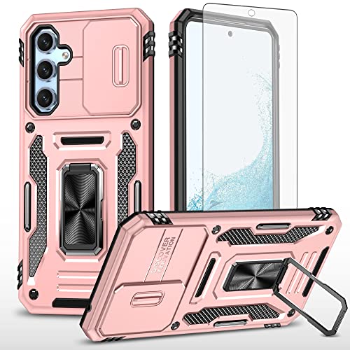 Asuwish Phone Case for Samsung Galaxy A24 4G/5G with Tempered Glass Screen Protector and Slide Camera Cover Ring Holder Kickstand Protective Cell Accessories A 24 24A Lte X24 G4 G5 Women Men Rose Gold