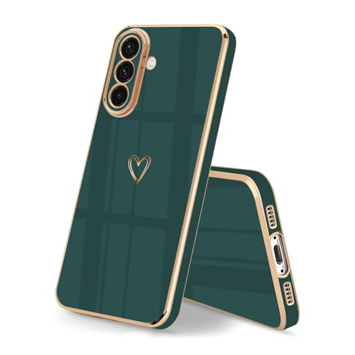 HopMore Phone Case for Samsung Galaxy A36 5G Case with Cute Heart Pattern Design, Soft Slim Shockproof Silicone Case Flexible TPU Thin Anti-Scratch Cover for Samsung A36 5G, Dark Green