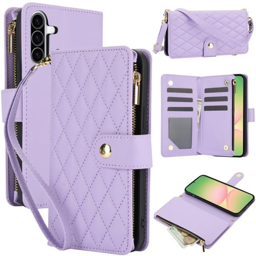 Purple PU Leather Flip Wallet Case with Magnetic Closure, Card Slots & Adjustable StrapâCompatible with Samsung Galaxy A57 5G 6.7"