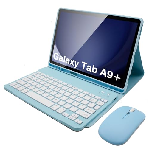 Keyboard Case for Samsung Galaxy Tab A9 Plus/A9+ 5G 11 Inch (SM-X210/X216/X218), Detachable Bluetooth Keyboard, Pencil Holder,Dual Mode Mouse,Blue