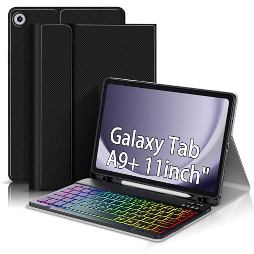 Samsung Galaxy Tab a9 A9+ 11 Inch Keyboard Case - 7 Colors Backlit for Tab Plus 5G 11 Inch, Smart Touch Wireless Keyboard with Pen Holder