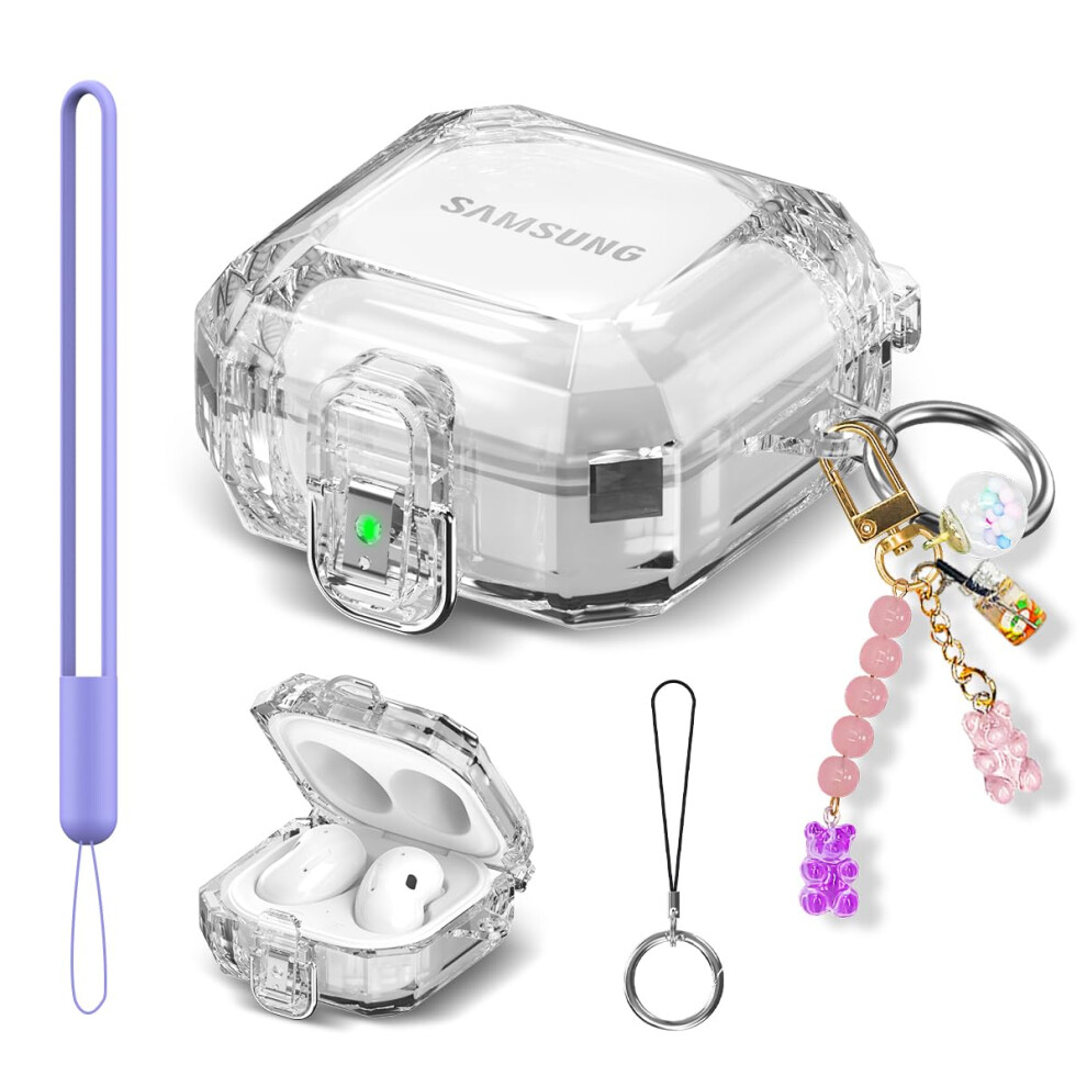 [Upgrade Lock] Clear Case for Galaxy Buds 2 Pro Case/Galaxy Buds Pro Case/Galaxy Buds 2 Case/Galaxy Buds Live Case Transparent Hard PC Full