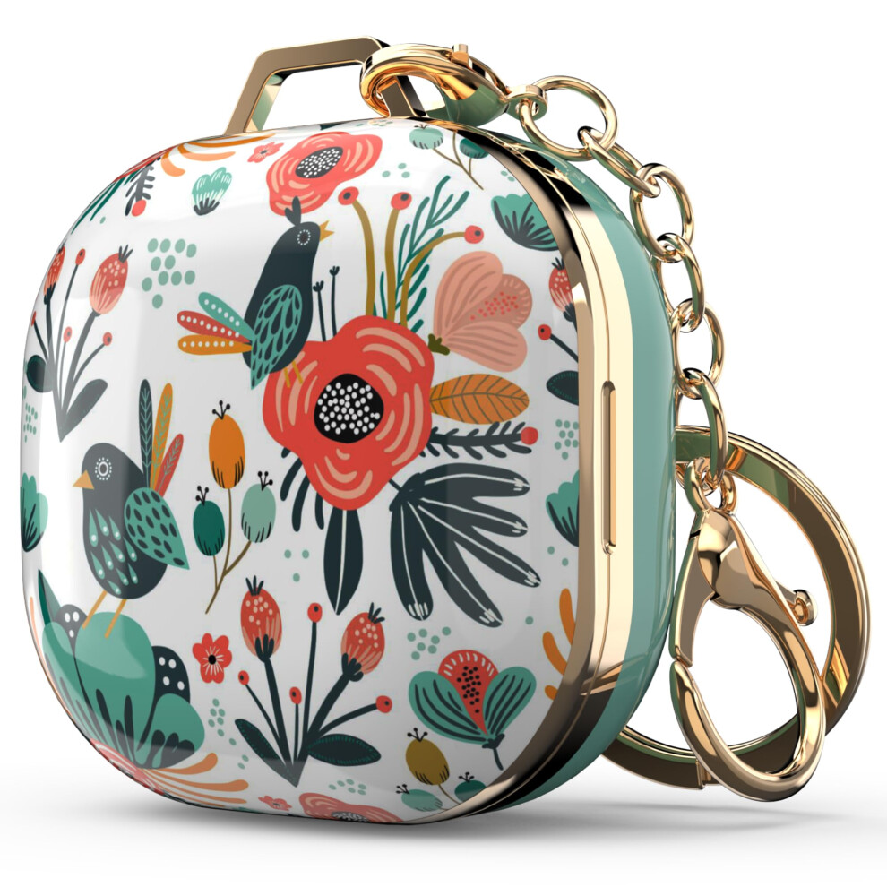 Wenew Case Cover for Galaxy Buds 2/Pro/Live, Cute Patterns Hard Shell with Key