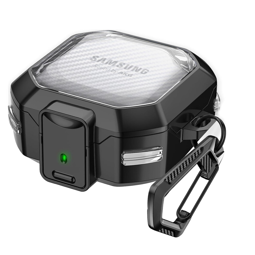 (with Secure Lock) Clear Carbon Fiber Case Cover for Samsung Galaxy Buds FE (2023) /Galaxy Buds 2 Pro(2022)/Galaxy Buds Pro(2021)/Galaxy Bud