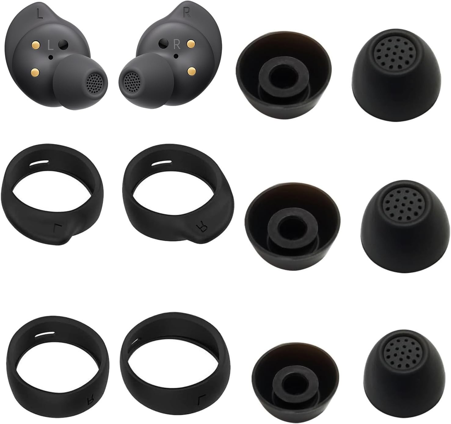 Memory Foam Tips for Samsung Galaxy Buds FE, No Silicone Eartips Pain, Anti-Slip Replacement Ear Tips, Fit in The Charging Case, Reducing Noise Earbuds, 3 Pairs (Assorted Sizes S/M/L, Black)