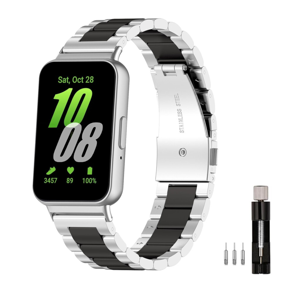 Gimuk Metal Straps Compatible with Samsung Galaxy Fit 3 Strap, Adjustable Bling Replacement Watch Strap Band Bracelet Compatible with Samsung Galaxy Fit 3 SM-R390 (Silver)