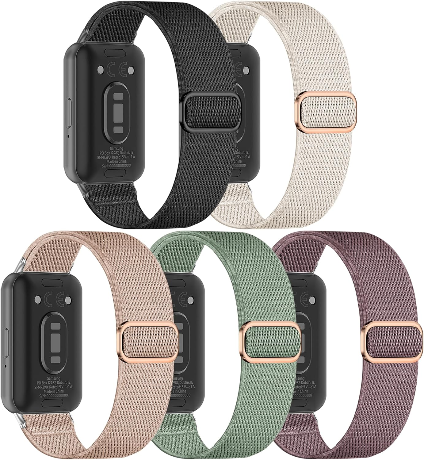 EverAct 5 Pack Stretchy Nylon Compatible with Samsung Galaxy Fit 3 Strap for Women Men, Elastic Adjustable Soft Sport Strap Wristband for Galaxy Fit 3 SM-R390