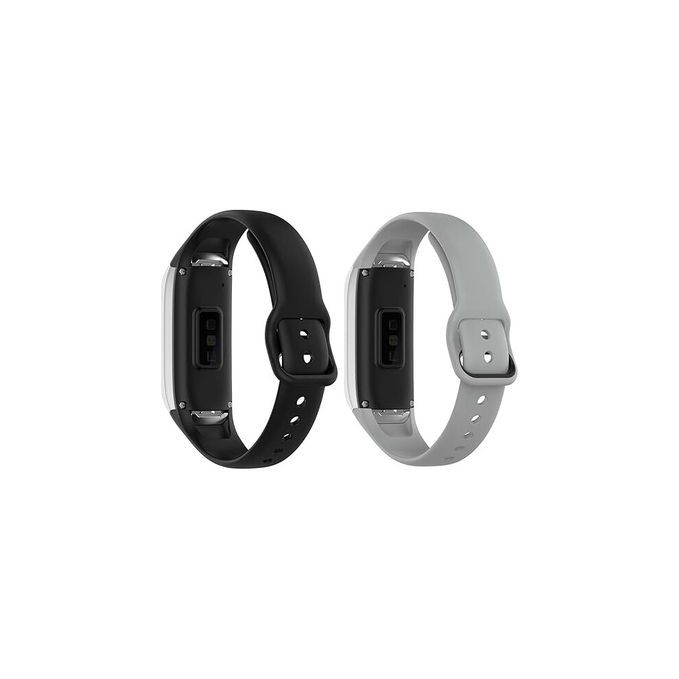 Newremote 2 Pack Waterproof Straps fit for Samsung Galaxy Fit 3 Strap, Classic Soft Sports Galaxy Fit 3 SM-R390 Replacement Strap for Women Men (Black/Grey)