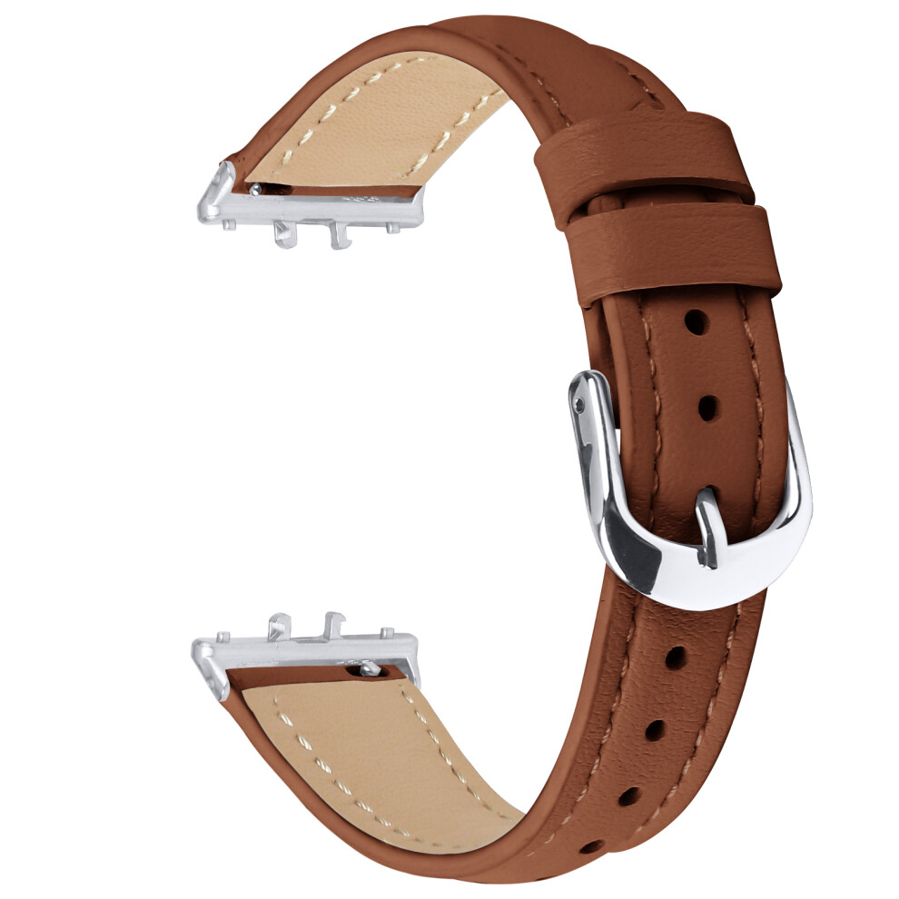 (Brown) For Samsung Galaxy Fit3 Watch Band Slim Genuine Cow Leather Strap with Silver Buckle