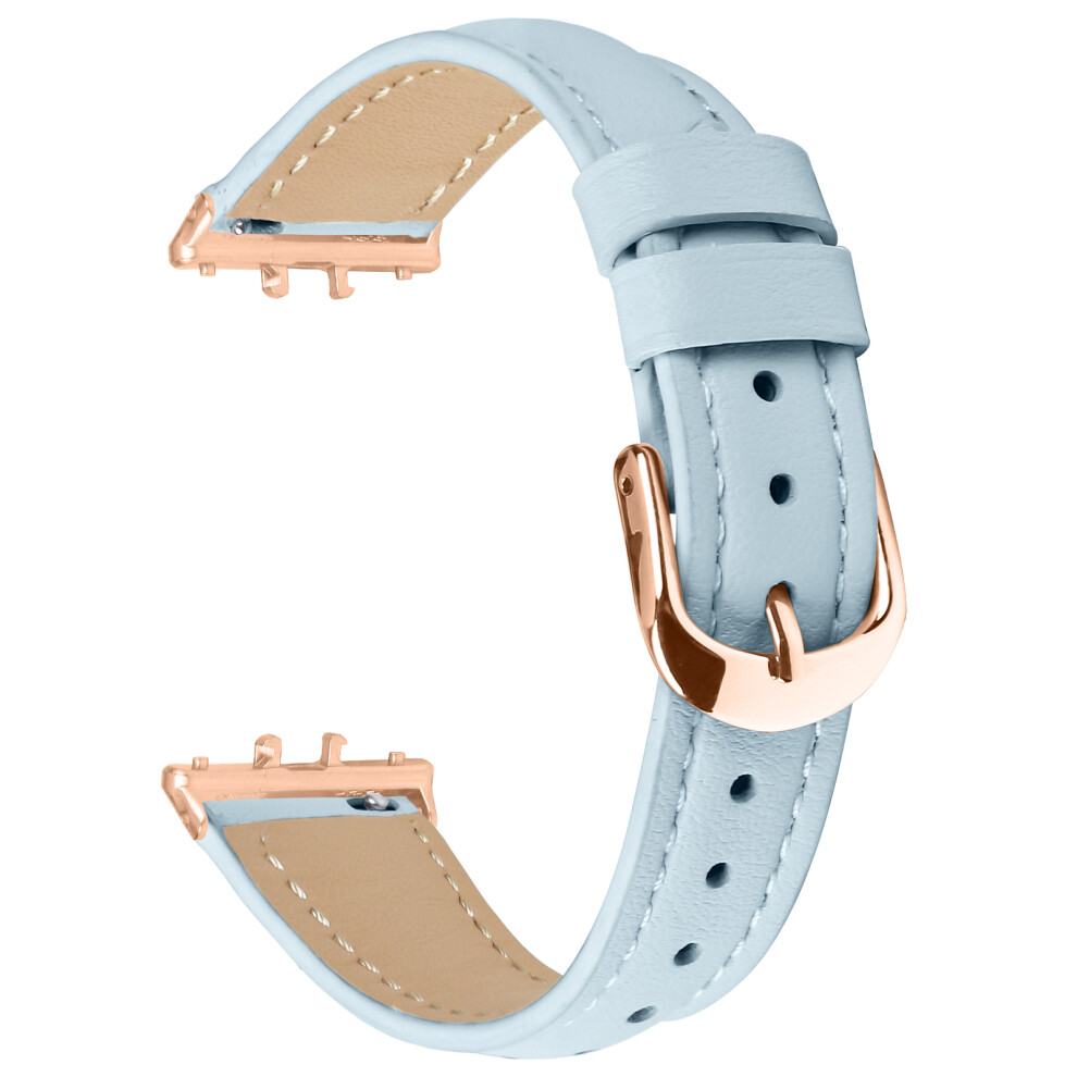 (Sky Blue) For Samsung Galaxy Fit3 Watch Band Rose Gold Buckle Slim Leather Strap