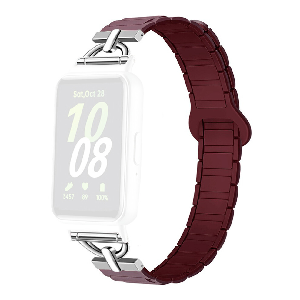 (Wine Red) For Samsung Galaxy Fit3 Magnetic Watch Strap Silicone Wrist Band with D Ring Connector