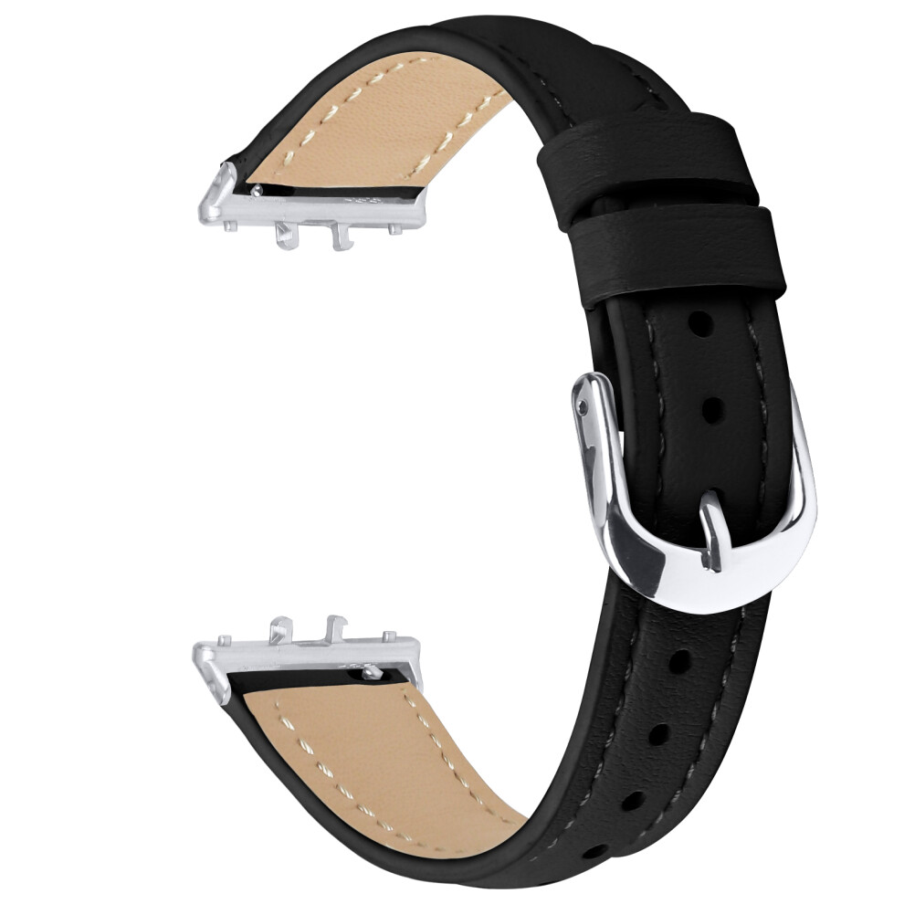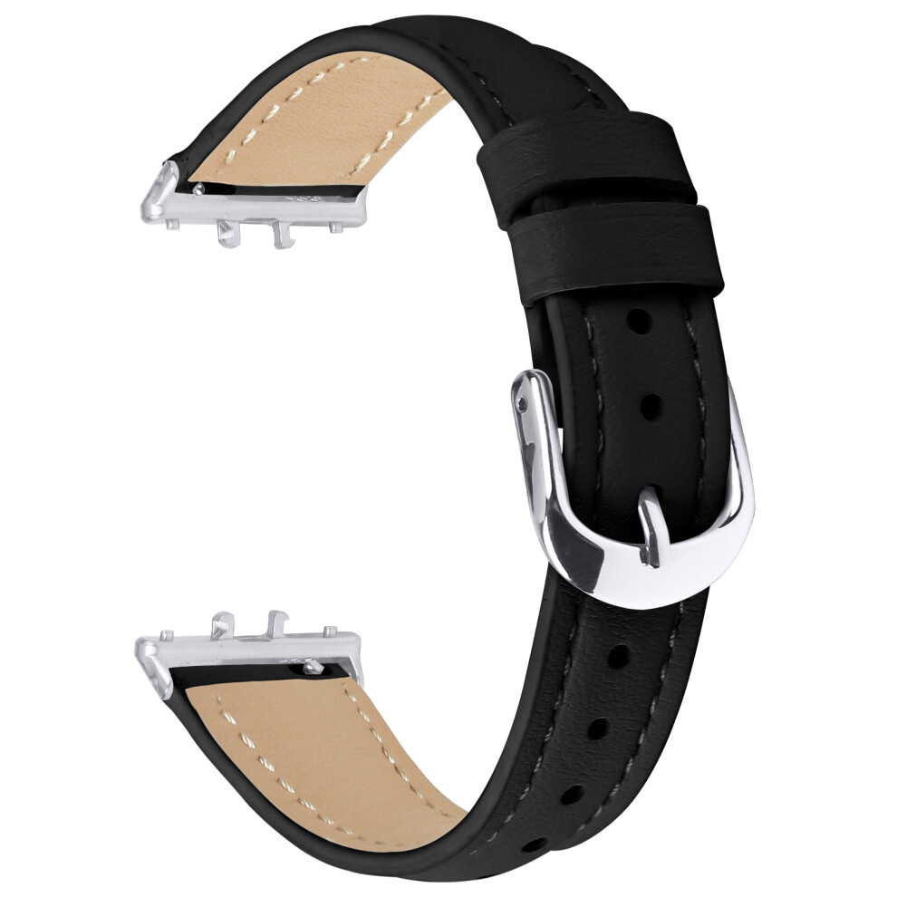 (Black) For Samsung Galaxy Fit3 Watch Band Slim Genuine Cow Leather Strap with Silver Buckle