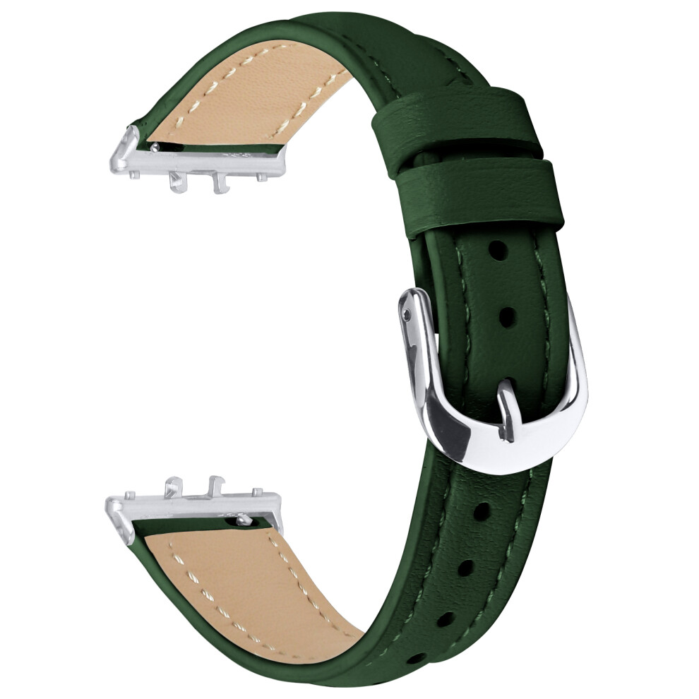 (Green) For Samsung Galaxy Fit3 Watch Band Silver Buckle Slim Leather Strap