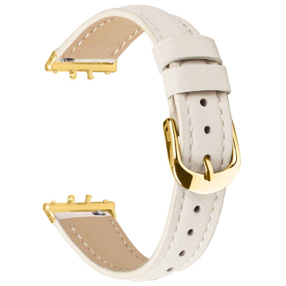 (White) For Samsung Galaxy Fit3 Watch Band Gold Buckle Slim Leather Strap