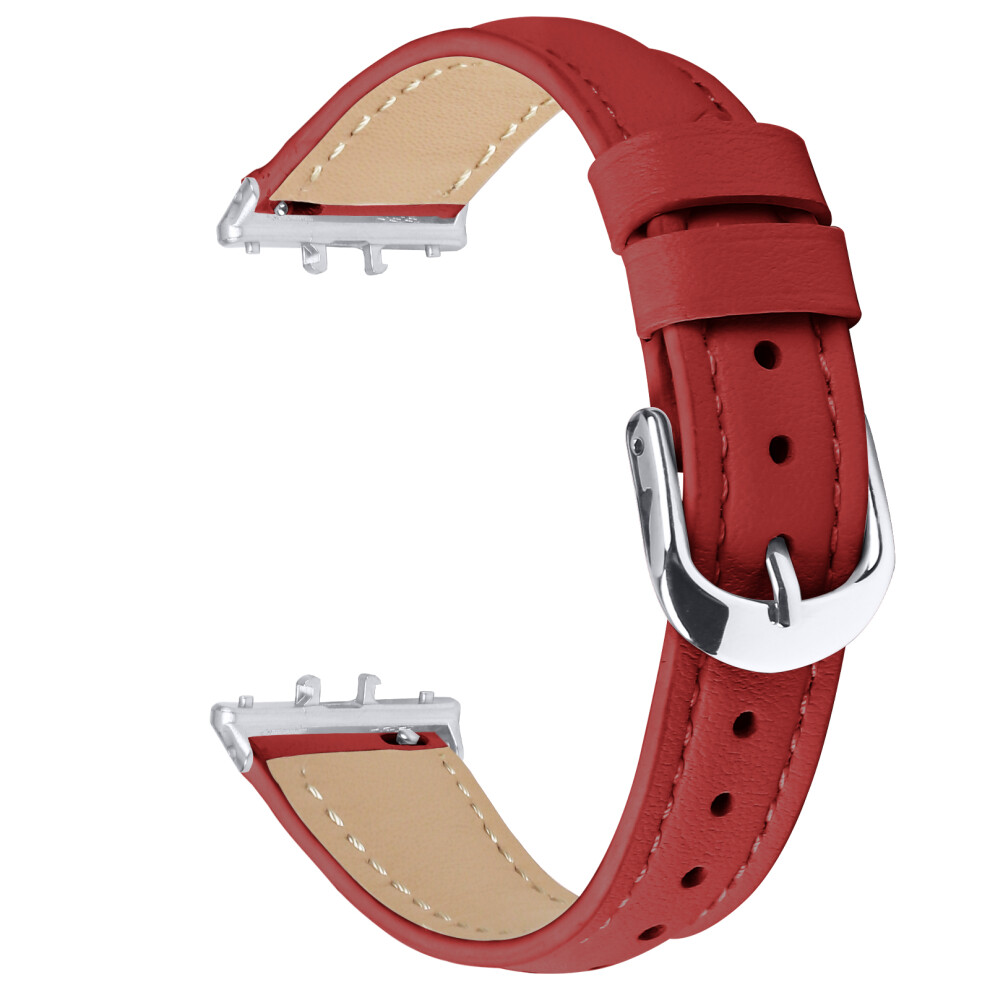 (Red) For Samsung Galaxy Fit3 Watch Band Slim Genuine Cow Leather Strap with Silver Buckle