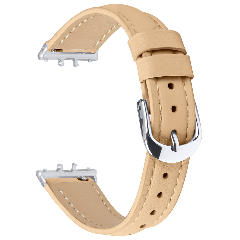 (Apricot) For Samsung Galaxy Fit3 Watch Band Slim Genuine Cow Leather Strap with Silver Buckle