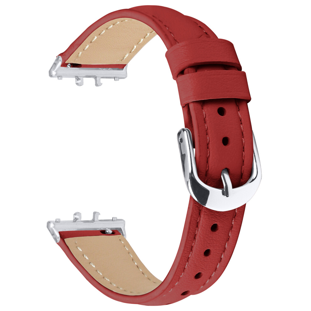 (Red) For Samsung Galaxy Fit3 Watch Band Silver Buckle Slim Leather Strap