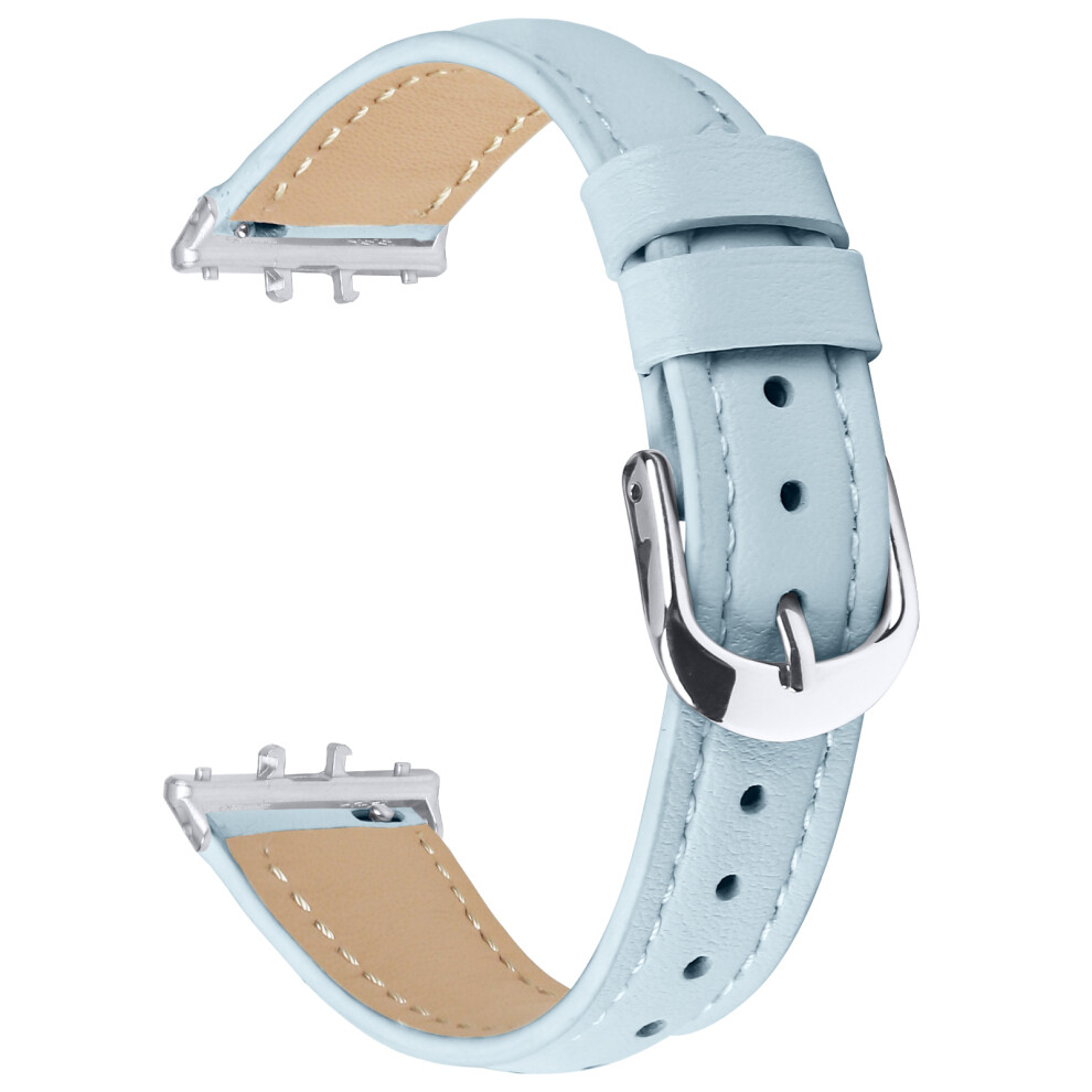 (Sky Blue) For Samsung Galaxy Fit3 Watch Band Slim Genuine Cow Leather Strap with Silver Buckle