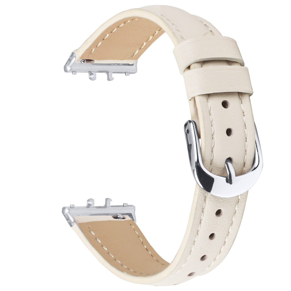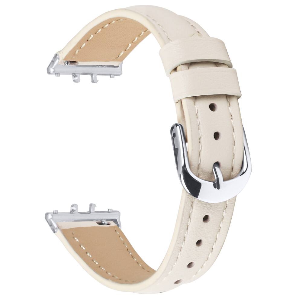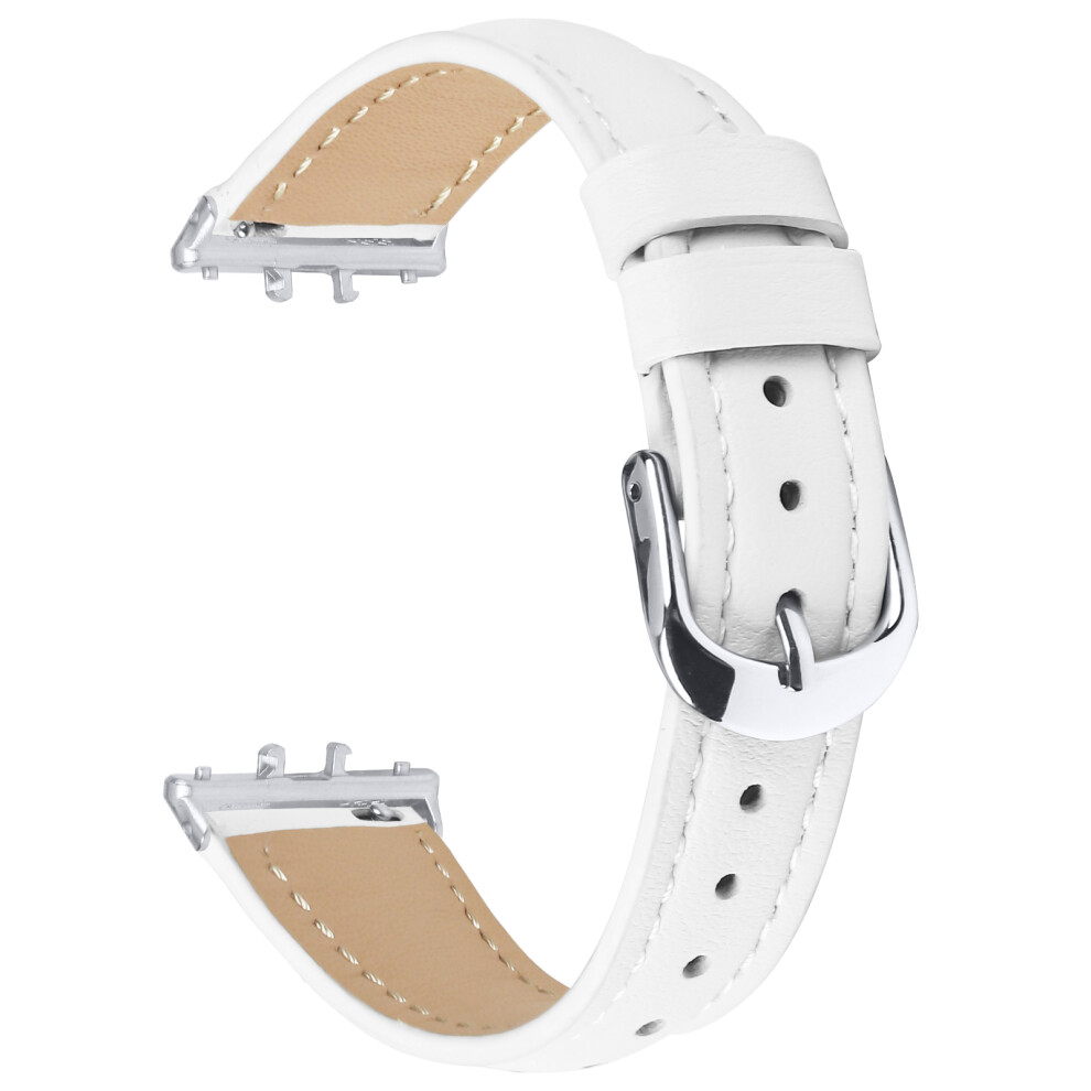 (White) For Samsung Galaxy Fit3 Watch Band Slim Genuine Cow Leather Strap with Silver Buckle
