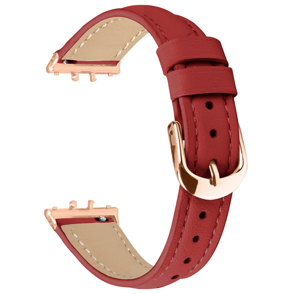 (Red) For Samsung Galaxy Fit3 Watch Band Rose Gold Buckle Slim Leather Strap