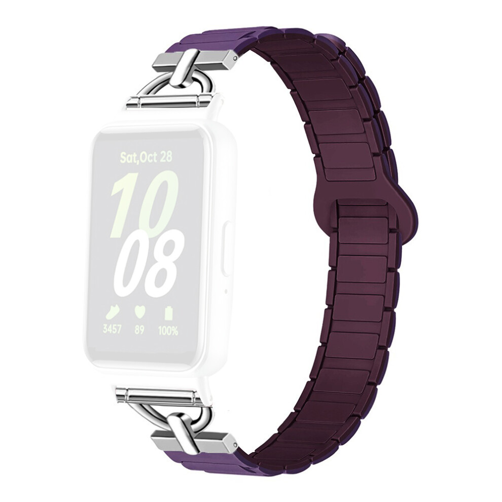 (Purple / Wine Red) For Samsung Galaxy Fit3 Magnetic Watch Strap Silicone Wrist Band with D Ring Connector