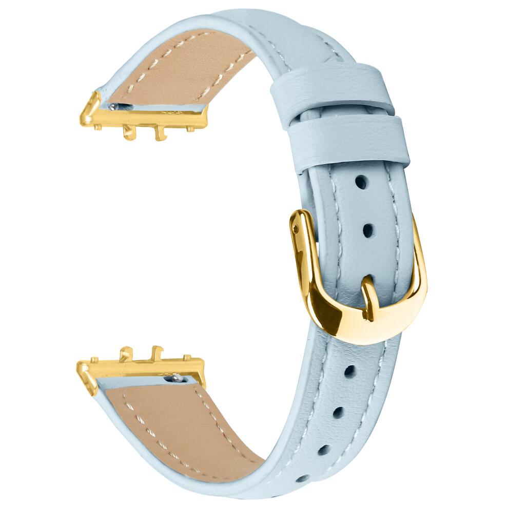 (Sky Blue) For Samsung Galaxy Fit3 Watch Band Gold Buckle Slim Leather Strap
