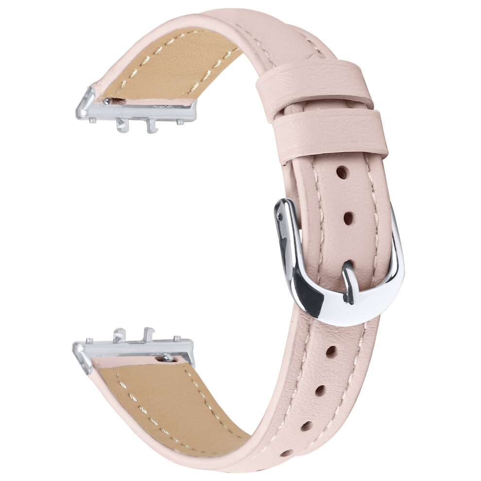 (Pink) For Samsung Galaxy Fit3 Watch Band Slim Genuine Cow Leather Strap with Silver Buckle