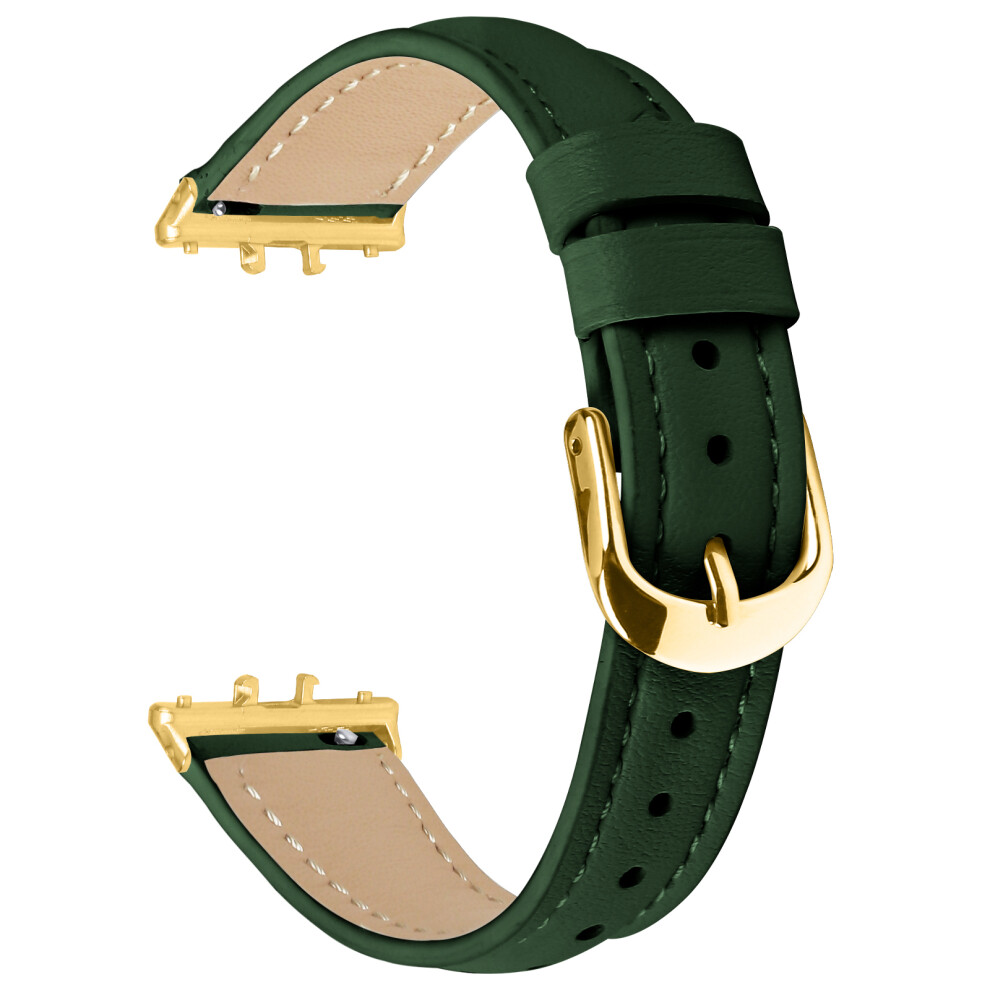 (Green) For Samsung Galaxy Fit3 Watch Band Gold Buckle Slim Leather Strap
