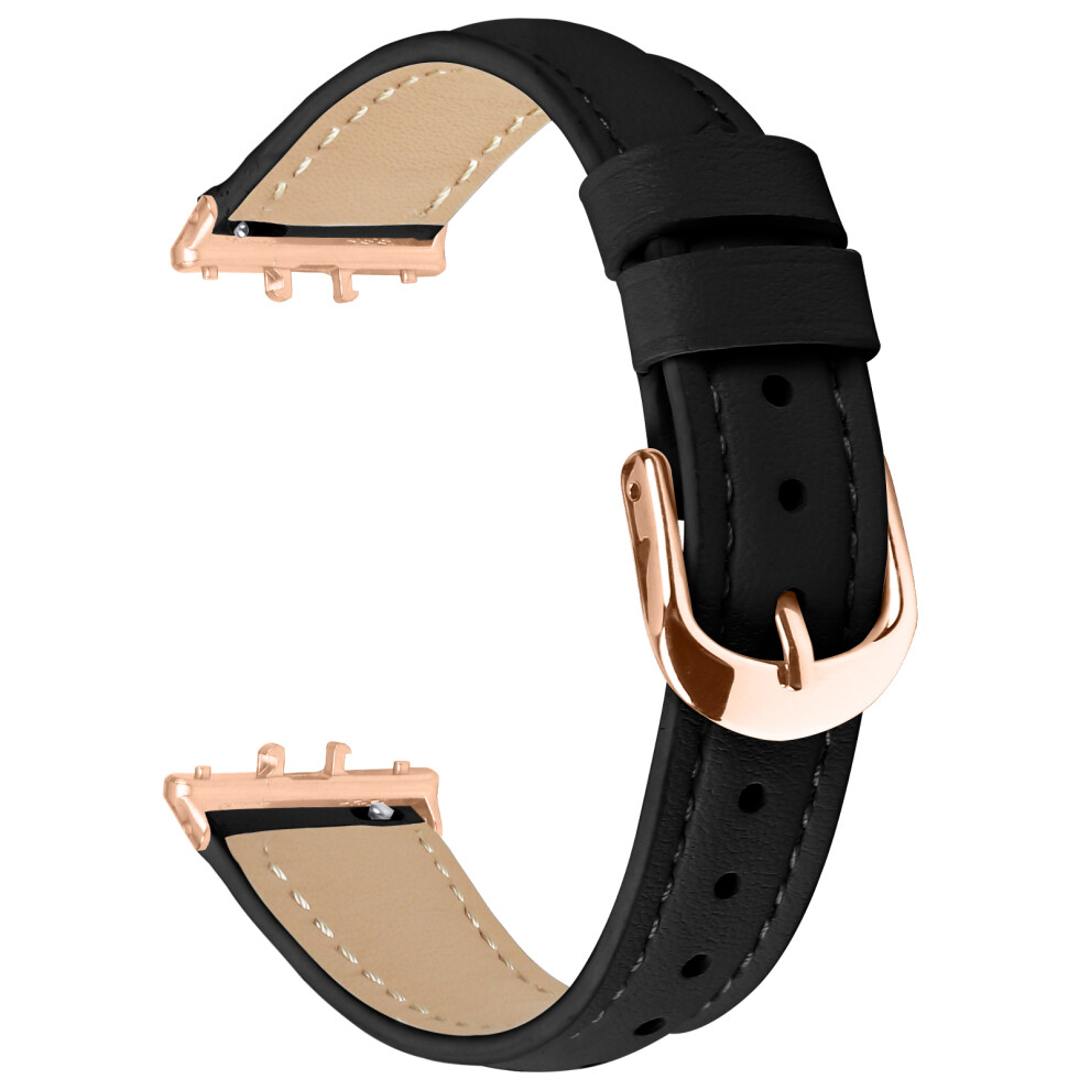 (Black) For Samsung Galaxy Fit3 Watch Band Rose Gold Buckle Slim Leather Strap