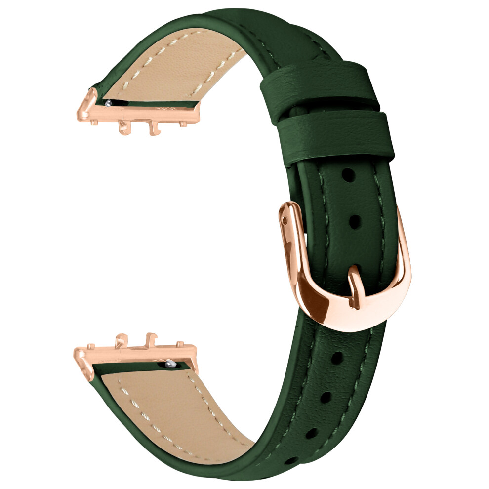 (Green) For Samsung Galaxy Fit3 Watch Band Rose Gold Buckle Slim Leather Strap