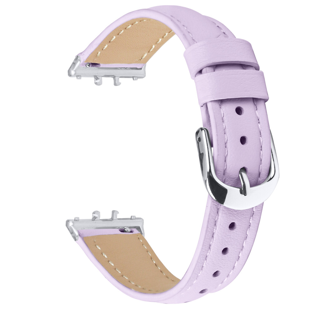 (Light Purple) For Samsung Galaxy Fit3 Watch Band Slim Genuine Cow Leather Strap with Silver Buckle