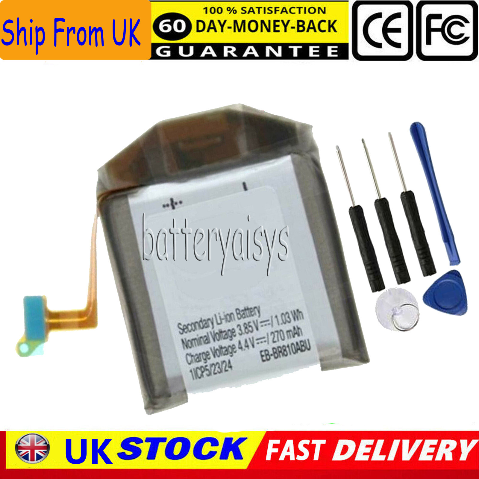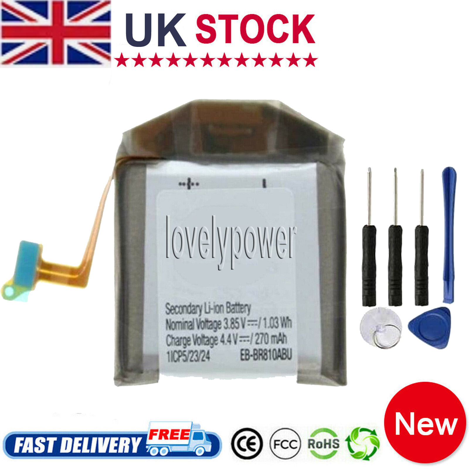 Replacement Battery for SM R810, EB BR810ABU Battery Replacement for Galaxy Watch Gear S4 42mm SM R810 R815U 1.03Wh 270mAh 3.85V Lithium Ion Battery