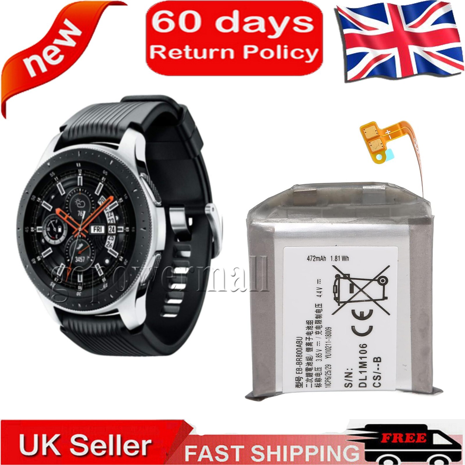 Battery For Samsung Galaxy Watch Gear S4 46mm SM-R805, GPS Smartwatch