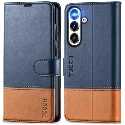 TUCCH Case for Galaxy S25 Plus (6.7") 2025 5G, PU Leather Wallet Magnetic Protective Flip Folio Stand Cover with[RFID Blocking]Card Holders[Shockproof TPU]Compatible with Galaxy S25+ Plus, Blue&Brown